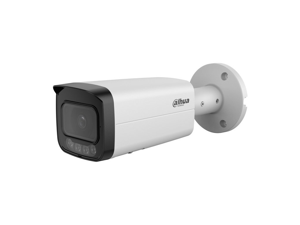 4 Mpx kompaktná IP kamera, exteriérová, Day/Night , IR 80m, WL 60m, 1/1.8" 4 Megapixel CMOS, rozlíšenie 2688 x 1520 px @ 1-25/30 fps, citlivosť 0,0007 lx @F1.6, objektív 2,8 mm, uhol záberu H: 112°, V: 58°, D: 137°; AWB, AI-ISP, BLC, HLC, WDR 140dB, AGC, ROI, 3DNR, SSA, Defog, LDC, Full Color; kompresia H.265 / H.264 / H.264H / H.264B / MJPEG (Sub Stream), RTMP, podpora Smart a AI Codekov, ONVIF kompatibilné; inteligentné funkcie: IVS (Perimeter Protection), Large AI model (Xinghan), SMD 4.0, AcuPick, Face Detection, People Counting, Queue Management, Heat Map, Video Metadata, Smart Search; RJ-45, zabudovaný mikrofón, micro SD karta max. 1 TB, alarm I/O 1/1, audio I/O 1/1, napájanie 12 V DC / PoE+ (802.3at) / ePoE, Dual Power Backup, spotreba max. 15,6 W, pracovná teplota od -40 °C do +60 °C, IP67, IK10 rozmery 238 x 90,7 x 90,7 mm, hmotnosť 0,835 kg.