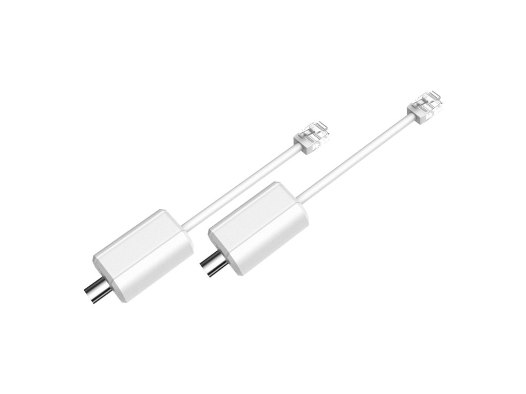 Sada pasívnych prevodníkov, 2x RJ-45, 2x BNC, podpora kábla RG59, vzdialenosť 400 m => napájanie + sieť 100 Mbps, vzdialenosť 1000 m => napájanie + sieť 10 Mbps, prevodník možno použiť len s ePoE prvkami, ochrana proti blesku 6 kV, pracovná teplota od -40 °C do +60 °C, hmotnosť 28 g, 56 x 27 x 21 mm
