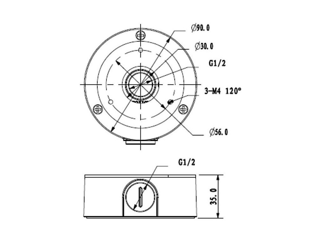 Dahua PFA134Krabice pod bullet kamery Dahua HFW(SP/RP/RMP). Kabel je protažen nahoru nebo do strany. Max zátěž 1 kg. Použitelný v kombinaci s držákem na sloup PFA150.