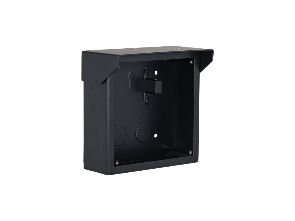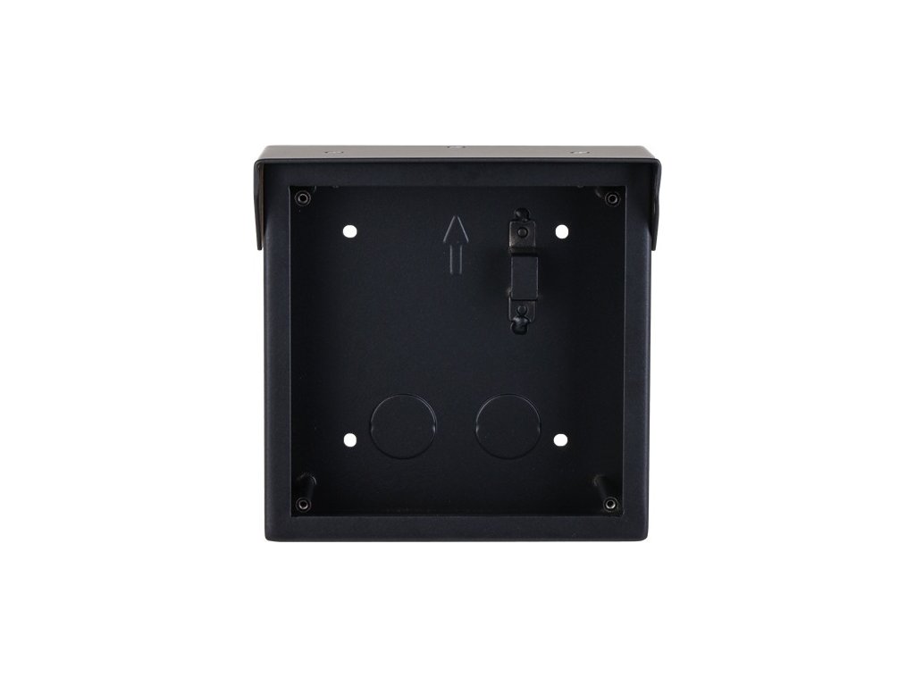 Inštalačná krabica so strieškou pre 1 modul modulárneho systému Dahua VTO4202F, inštalácia na omietku, hliník, čierne prevedenie, rozmery 142,7 × 144,8 × 75,0 mm, pre inštaláciu je potrebný inštalačný rámik VTM78