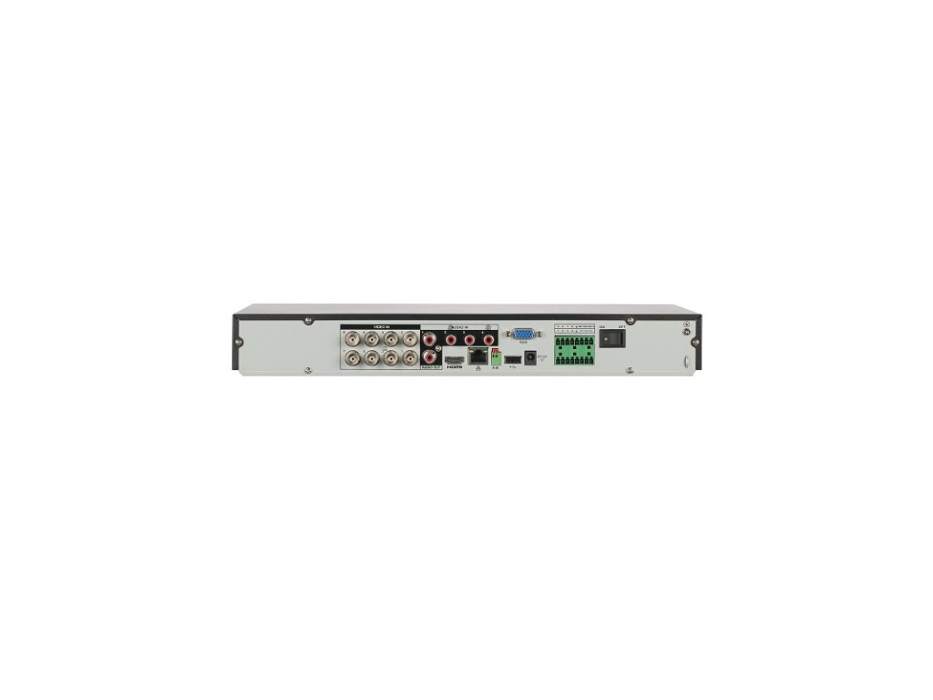 HDCVI Videorekordér 8x Analógový kanál (HDCVI, AHD, TVI, CVI a CVBS) max. rozlíšenie 8 Mpx, + 8x IP max. rozlíšenie 8 Mpx, dátový tok max. 128 Mbps (analógové kanály konvertovateľné na IP); inteligentné funkcie (niektoré AI funkcie nedostupné pri zapnutom IP rozšírení): Quick Pick 2.0 max. 2 kanály, IVS (perimeter Protection) max. 8 kanálov, Face Detection max. 2 kanály, Face Recognition max. 2 kanály, SMD Plus max. 8 kanálov, Video Quality Analytics max. 8 kanálov, Scene Changing max. 1 kanál, Irregular Black Block Masking max. 1 kanál, EPTZ max. 1 kanál, Privacy Protection max. 1 kanál; 1x HDMI (4K), 1x VGA, 1x RS-485, 1x USB 2.0, 1x USB 3.0, 1x RJ-45 10/100/1000 Mbps, 8x BNC, Audio: 8x BNC Audio, 1/1 I/O Audio RCA, Alarm I/O 8/3, 2x SATA max.: 16 TB, napájanie 12 V DC / 4 A, Rozmery: 260 x 237,8 x 47,6 mm, hmotnosť 1,6 kg, pracovná teplota od -10 °C do + 55 °C