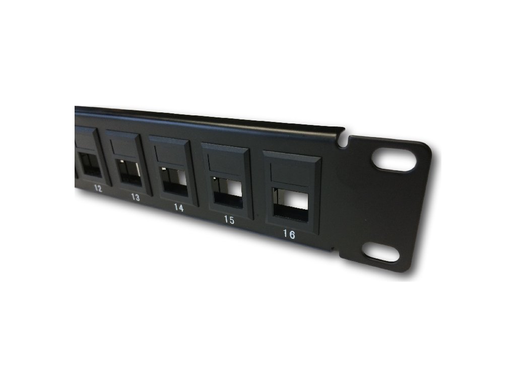 - 19" Neosazený patch panel určený pro montáž do 19" datových rozvaděčů.