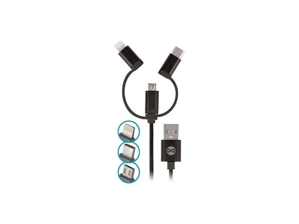 Datový kabel Forever 3v1 USB/microUSB, Lightning, USB-C 1m 1,5A černý