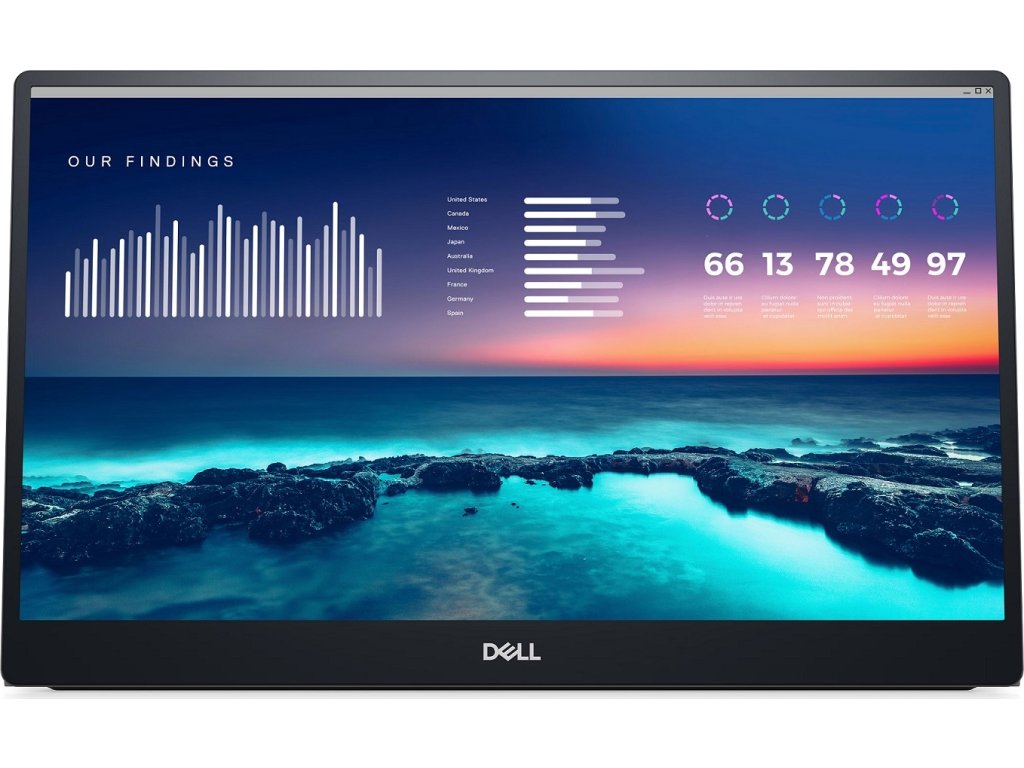 Přenosný monitor s úhlopříčkou 14" a Full HD rozlišením 1920 × 1080 bodů. Nabízí jas 300 cd/m2 a kontrastní poměr 700 : 1. Příjemné jsou také pozorovací úhly 178° horizontálně i vertikálně. Pro připojení k notebooku vyžaduje pouze jediný kabel USB-C, a to jak pro video signál, tak i pro napájení.