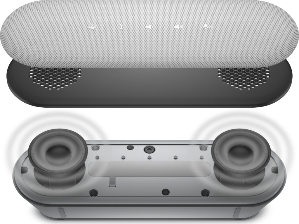 Kvalitní konferenční reproduktor nabízí výkon 3,6 W a je ideální pro videokonference nebo hovory zejména při práci z domova. Reproduktor disponuje vestavěným mikrofonem, který snímá zvuk ze všech směrů. Potěší také funkce pro potlačení ozvěny a nežádoucího okolního hluku pomocí umělé inteligence. Na přední straně reproduktoru se nachází celkem pět tlačítek, která umožňují ovládat hlasitost, ztlumit mikrofon nebo přijmout hovor. Připojení je realizováno skrze integrovaný kabel o délce 85 cm s konektory USB a USB typu C.