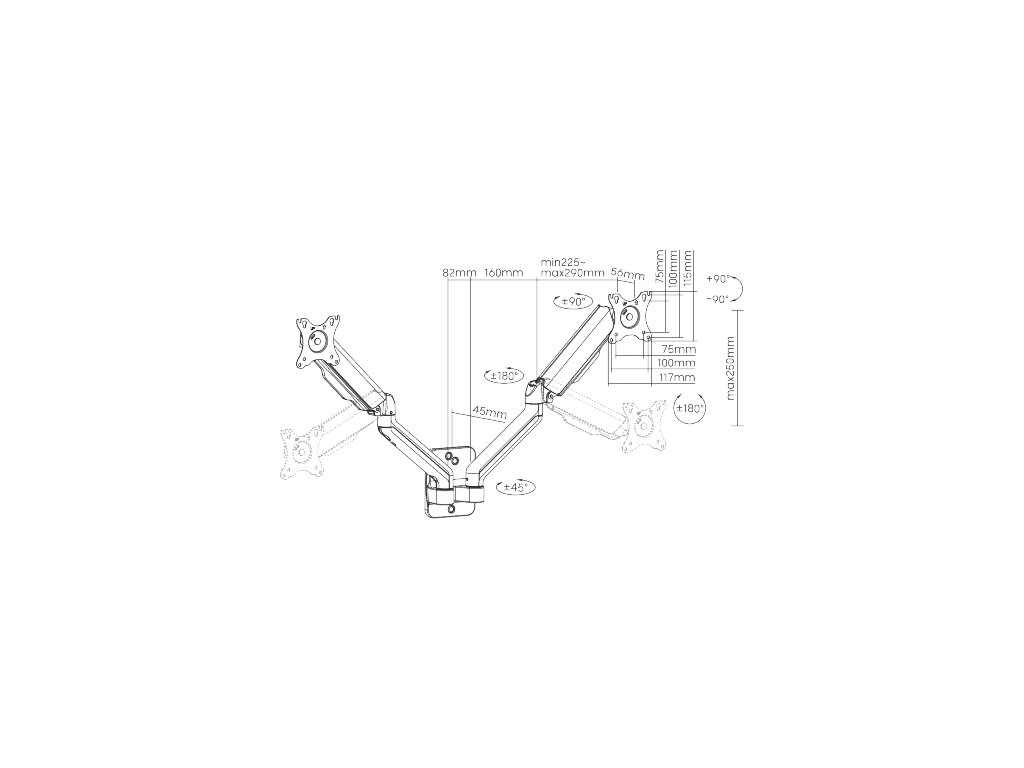 Díky odolné ocelové konstrukci poskytuje stabilní podporu pro dva monitory s úhlopříčkou 17" až 32" a hmotností až 9 kg na rameno. Flexibilní konstrukce pro dostatečné nastavení výšky a pozorovacích úhlů s možností nastavení orientace monitoru na výšku nebo na šířku.