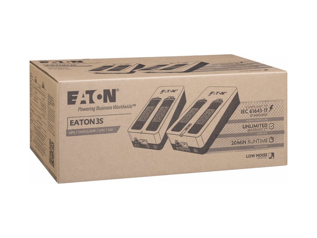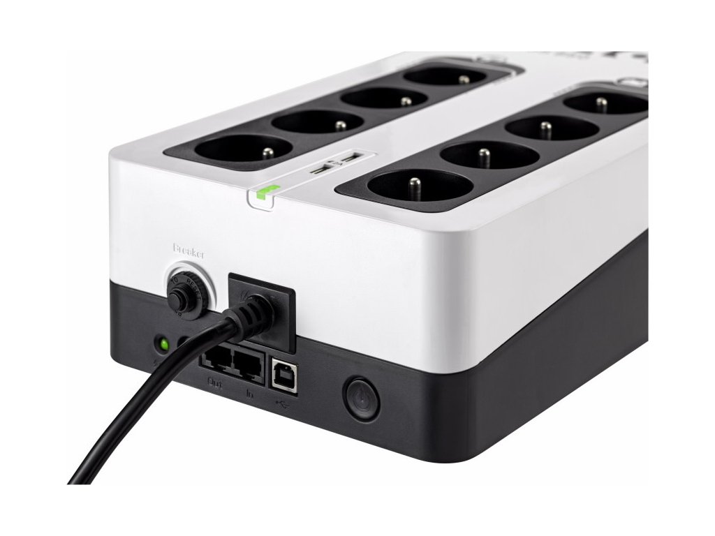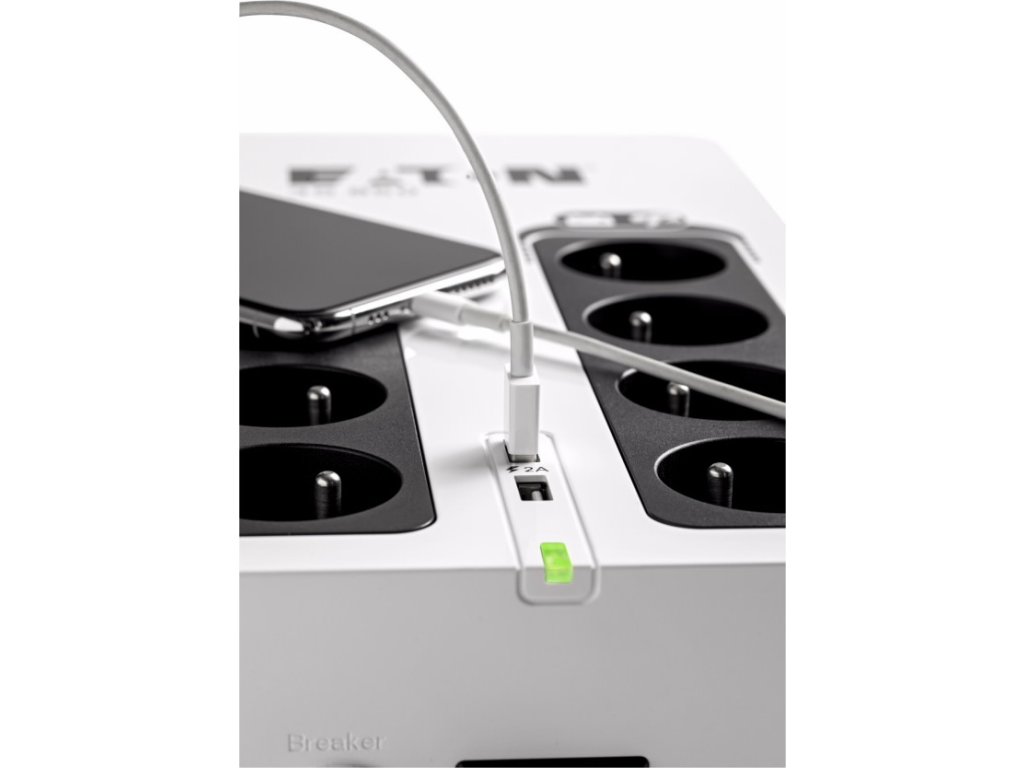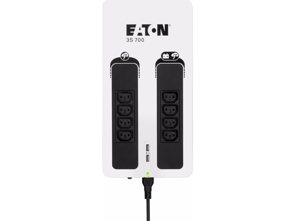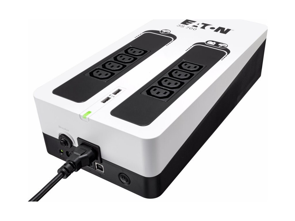 Eaton 3S700IUPS Eaton 3S pomáhá chránit vaši výpočetní techniku v případě výskytu nežádoucích jevů a událostí, jako jsou atmosférické výboje, bouřky, přetížení rozvodné sítě, poruchy a živelné události, způsobující bez předchozího varování výpadky napájení z elektrorozvodné sítě. Při úplném výpadku poskytuje UPS záložní napájení z baterie až čtyřem z osmi připojitelných zařízení. Tento záložní zdroj též chrání telefonní, širokopásmové a Ethernetové připojení proti přepětí. Software pro odstavení umožňuje automatické uložení rozpracovaných úloh a ukončení vašich aplikací bez ztráty dat díky propojení USB portem. Po obnovení napájení budete moci pokračovat přesně z bodu, ve kterém jste aplikaci ukončili. Díky atraktivnímu designu a líbivé povrchové úpravě UPS 3S dokonale zapadne do moderního kancelářského prostředí.