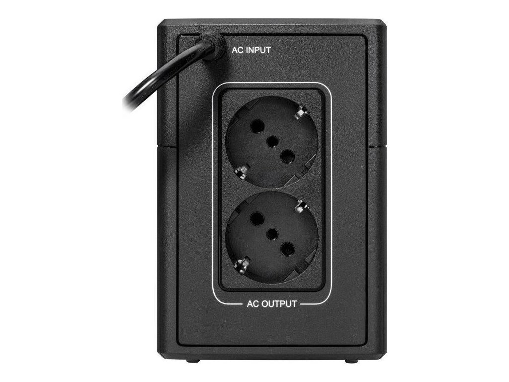 - Technologie automatické regulace napětí (AVR) s dvojitým posílením reguluje kolísání sítě (podpětí a přepětí), aby šetřila energii z baterií při případě výpadku napájení.