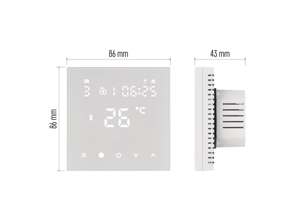 typ ovládání programovatelný elektronický pokojový termostat, možnost ovládaní přes mobil (iOS, Android)