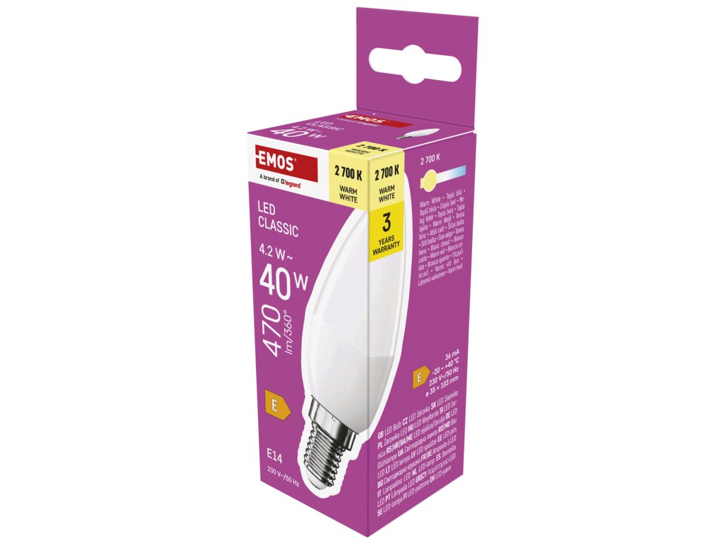 EMOS LED CLS CANDLE 4,2W(40W) 470lm E14 WW