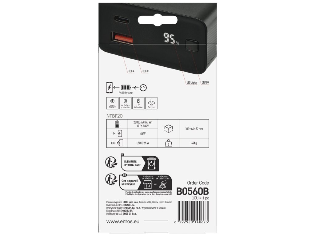 EMOS PWB NTBF20 20000MAH 65W PD 1×USB-C 1×USB-A