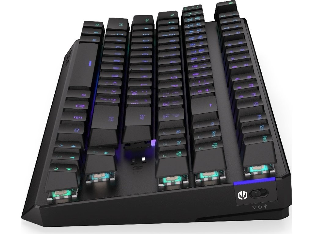 Bezdrátová mechanická herní klávesnice je vybavena spínači Kailh Red s perfektní odezvou a životností až 70 milionů stisků. Klávesy jsou ARGB podsvícené a nabízí možnost vlastního nastavení. Klávesy jsou navíc také plně programovatelné, díky tomu lze klávesnici individualizovat přesně podle potřeb hráče a hrané hry. Samozřejmě nechybí ani funkce Anti-Ghosting a N-Key rollover. Připojení k počítači lze realizovat jak bezdrátově skrze Bluetooth či miniaturní USB přijímač a technologii 2,4 GHz, tak i drátově pomocí USB kabelu, který slouží zároveň pro nabíjení.