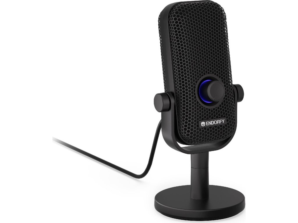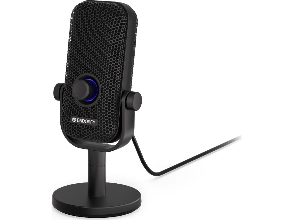 Kvalitní mikrofon s kardioidní charakteristikou a stojánkem je ideální pro streamování, natáčení vlogů, podcastů či hlasovou komunikaci. Díky své kompaktní velikosti zabírá velmi málo místa, takže se pohodlně vejde i na malé stoly. Kromě toho má dobrou povrchovou přilnavost a je kompatibilní se všemi mikrofonními rameny Endorfy. Vybaven je RGB podsvícením, dotykovým tlačítkem pro ztlumení mikrofonu a konektorem 3,5 mm jack pro připojení sluchátek. Kromě počítače můžete mikrofon připojit také k herní konzoli PS4 a PS5, nebo ke smartphonu s rozhraním USB-C a podporou OTG. Součástí balení je pěnový pop-up filtr, 2m připojovací USB-C kabel a redukce z USB-C na USB-A.