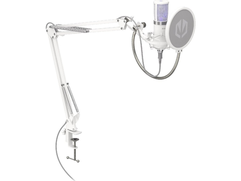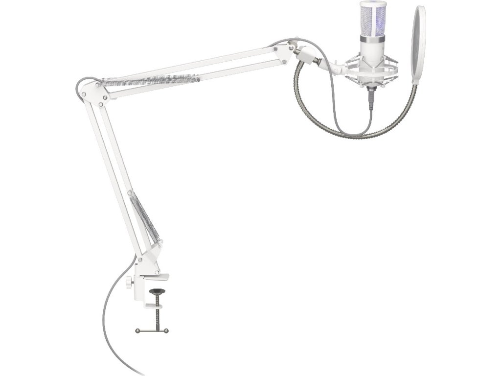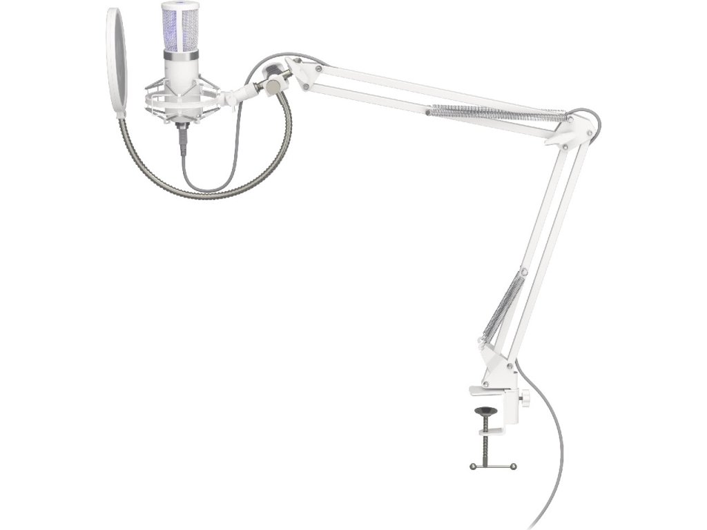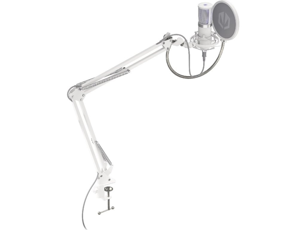 Dlouhé polohovatelné rameno šetří místo na vašem stole a umožní vám mikrofon rychle a jednoduše nastavit do požadované polohy. Konstrukce umožňuje uchycení na stranu desky stolu, čímž šetří prostor pro další důležité věci. Díky systému Plug & Play je během okamžiku připraven a vy můžete začít mluvit a využívat mikrofon naplno. Elegantní design Onyx White navíc dá vašemu domácímu studiu punc exklusivity.