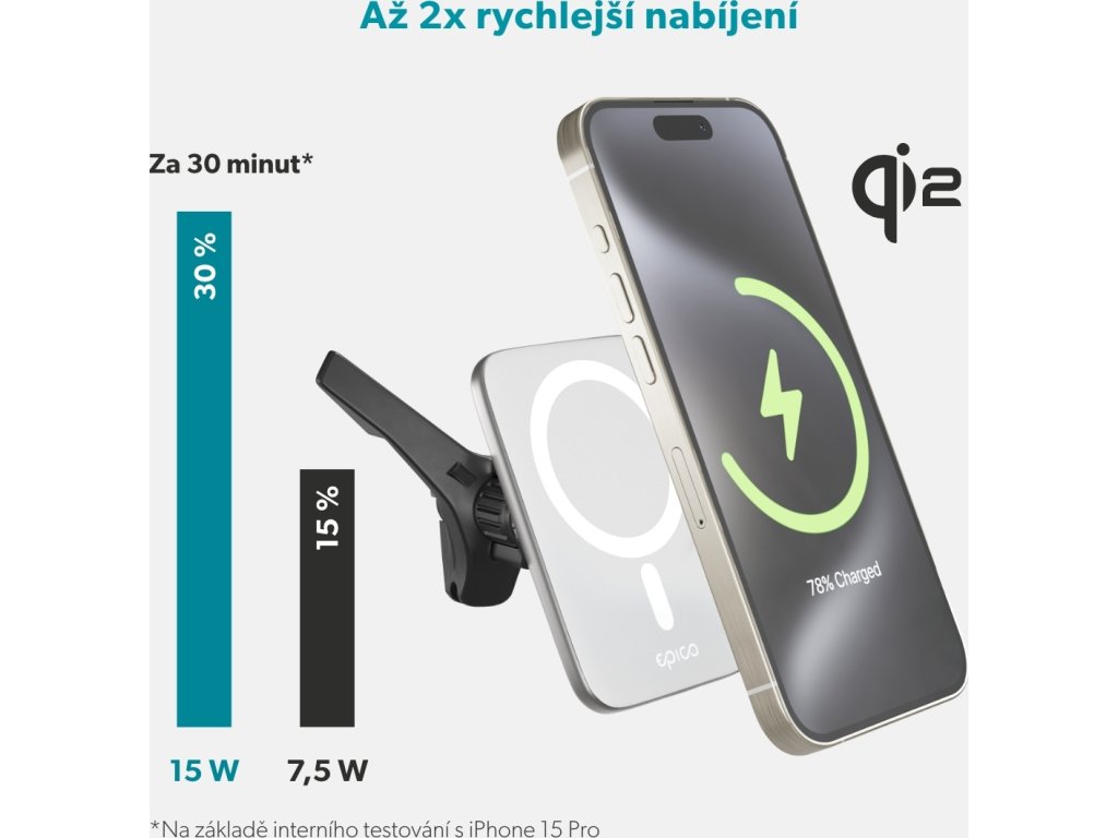 Epico Qi2 Mag+ ultra tenká autonabíječka - bílá