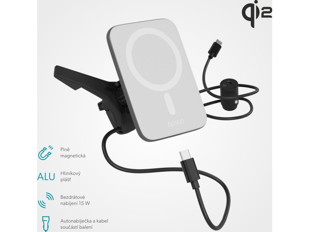 Až 2x rychlejší nabíjení s Qi2 Kompatibilita s MagSafe & Qi2: Bezproblémová kompatibilita s MagSafe & Qi2 umožňuje snadné bezdrátové nabíjení. Silný magnet: Zajišťuje bezpečné uchycení vašeho smartphonu. Qi2 bezdrátový výstup: Efektivní bezdrátové nabíjení s maximálním výkonem 15 W, až 2x rychlejší než standardní Qi nabíjení. Hliníkové tělo: Prémiové a odolné hliníkové tělo zabraňuje přehřívání. Ultratenký design: Pouze 7 mm tenká nabíječka nabízí velkou kontaktní. Flexibilní polohování: Po upevnění do větrací mřížky snadno nastavíte polohu pomocí kulového kloubu.