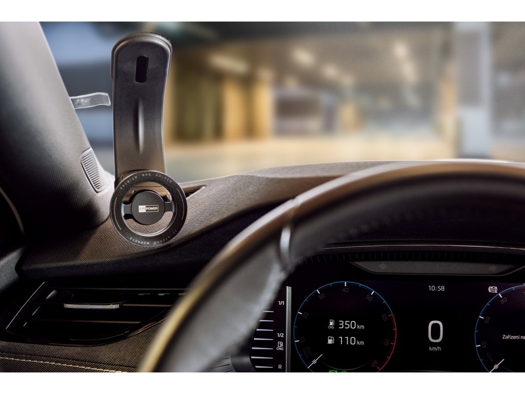 Díky integrovaným, silným, průmyslovým magnetům k držáku pevně přilne jakýkoli magnetický povrch. Spolehlivě udrží zařízení kompatibilní s MagSafe, tedy iPhone 12 a novější. Balení navíc obsahuje magnetický kroužek, který nalepíte na zadní stranu jakéhokoliv chytrého telefonu a můžete jej na magnetický držák snadno připevnit.