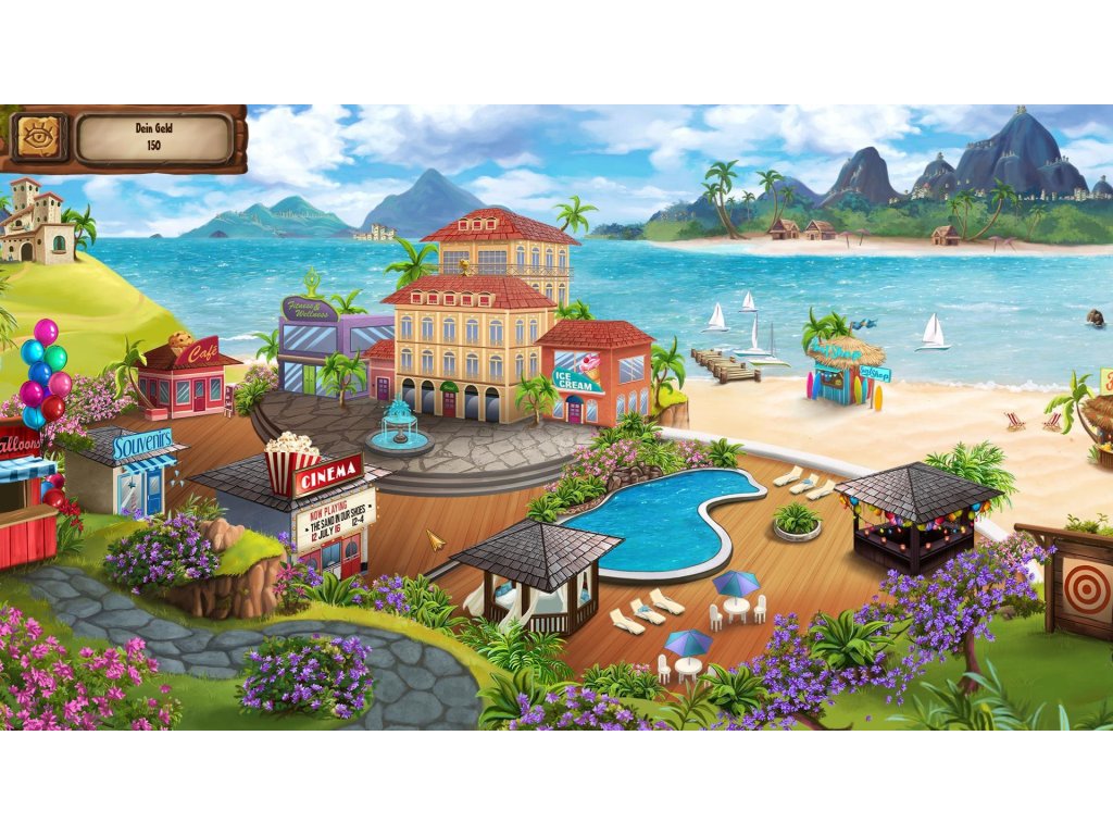 Užijte si pocit dovolené! Pomozte mladému manažerovi hotelu vybudovat luxusníluxusní hotel (20 budov a zařízení, jakojsou hotel, bary, kavárny, odpočinkovézóny, bazén, wellness a fitness centrum,kino apod.) Ručně kreslená HD grafika Solitaire mini hry pro ještě větší rozmanitost 96 náročných úrovní