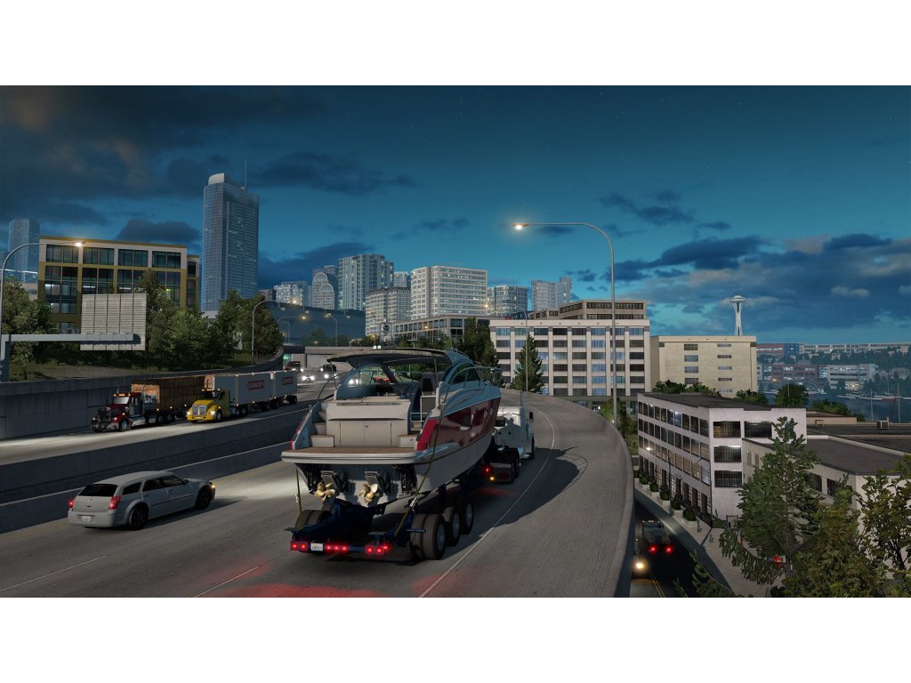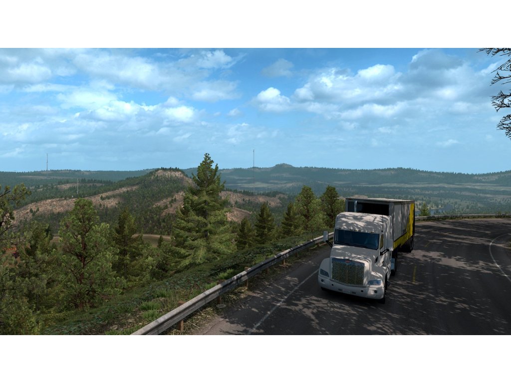 American Truck Simulátor West Coast Bundle obsahuje: American Truck Simulátor, American Truck Simulátor Oregon, AmericanTruck Simulátor Washington a American Truck Simulátor Forest Machinery.