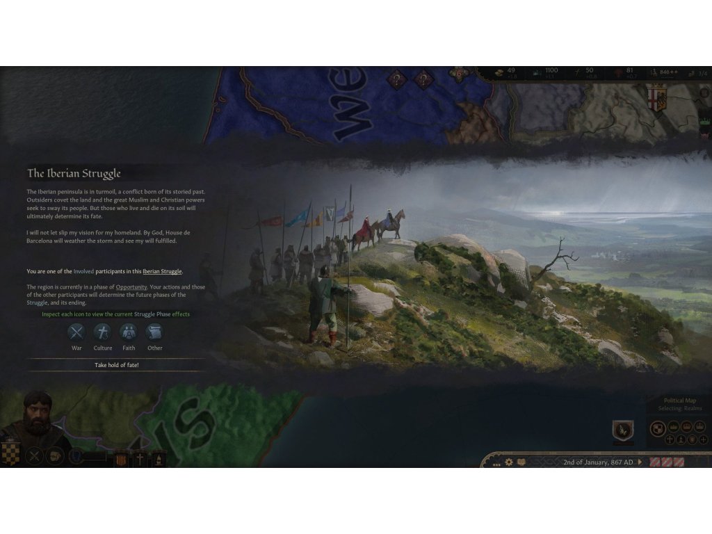 Sluncem políbené země Iberie čekají na vaši slavnou vládu s příchutí Crusader Kings III: Fate of Iberia. Středověký osudpoloostrova, který je hluboce bohatý nahistorii, kulturu a lidi, je připravenk tomu, aby jej utvářela vaše majestátníruka, ať už je oděna do smířlivého sametu nebo jako železná pěst.