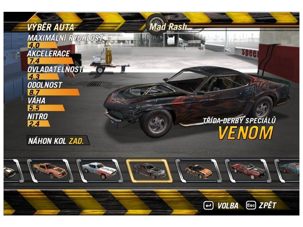 Tato závodní automobilová hra Vás zavededo prostředí velmi svérázných závodníků, kteří své síly nelítostně měří na offroadových okruzích. Pravidla jsou jednoduchá . Pokud chcete zpřístupnit další tratě a bonusové závody, musíte dojet do třetího místa. S novými tratěmi přicházejítaké lepší auta i dokonalejší díly, kterými můžete svůj vůz vylepšovat. Velmi zajímavým aspektem hry je plně interaktivní trať. Zničit lze prakticky vše; sudy,klády, značky, svodidla a samozřejmě také samotné vozy. Takže bourejte, protožeza každou kolizi získáte nejen peníze,ale i cenný nitrák!