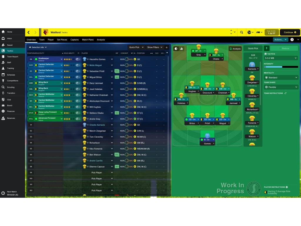 Football Manager Touch 2018 s výběrem zvíce než 2500 klubů a přes 190 000 skutečných fotbalistů, s nimiž lze podepsat smlouvu, nabízí propracovanost a sílu ceněných statistických údajů hry Football Manager, avšak soustředí se pouze na primární manažerské povinnosti – taktiku a přestupy. Nečeká vás tu žádný mediální cirkus, díky čemuž se rychleji přesunete od zápasu k zápasu a svižněji také uzavřete celou sezónu. Všem manažerům, kteří mají ještě víc naspěch, pak Touch nabízímožnost simulace zápasu jediným stisknutím tlačítka, kdy se vám o tým v době vaší nepřítomnosti stará váš personál. Jste-li fotbalovými puristy, můžete se díkynašemu 3D zápasovému enginu na vlastní oči kochat svou k životu přivedenou fotbalovou vizí.