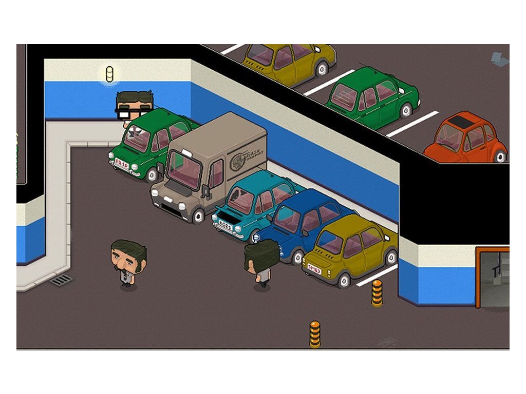 Použijte vše, co je ve vašem dosahu, abyste se dostali na konec úrovně: schovejte se za noviny, rozbijte automat s dobřezaměřeným kopem, nebo použijte koblihyk odlákání bezpečnostních stráží pryč.