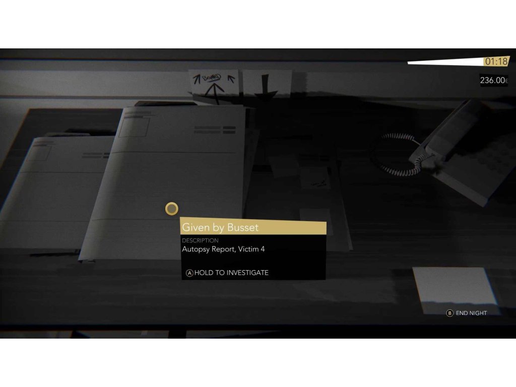 Využijte omezeného času, který máte každou noc k dispozici, abyste získali stopy a zároveň si vydělali peníze na zaplacení složenek. Vozte pasažéry do cíle, poslouchejte jejich příběhy a opatrně vybírejte své odpovědi – někteří z nich jsouobyčejní lidé, kteří si chtějí povídat,zatímco jiní mohou vyjevit stopu, kteráje pro vaše vyšetřování klíčová. Postupujte podle těch správných vodítek a odhalte nové informace o podezřelých – a zároveň nezapomeňte vydělat dost peněz, abyste si mohli koupit benzin a zaplatit účty.