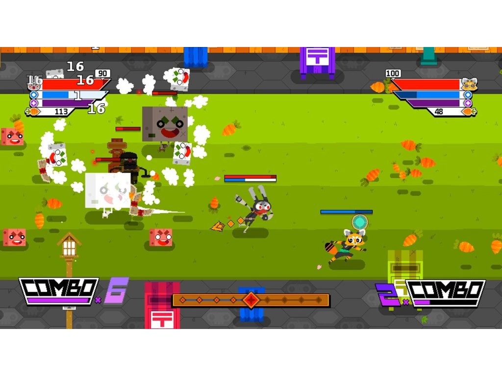 Ninjin: Clash of Carrots je mlátička vestylu anime s hromadou různorodých nepřátel, propracovaným systémem vlastních úprav… a se spoustou nindžů! Probojuj se vtéhle plošinovce mnoha světy složenýmiz více částí a sbírej na cestě mrkve ukradené ďábelským Shogun Moe! Mrkve sloužíjako zvláštní měna, za kterou můžeš v obchodě Corgi získat nové vybavení a v Temném obchodě speciální zbraně, masky a další předměty sloužící k nejrůznějším modifikacím. Vezmi s sebou kamaráda a zahrajte si v online hře pro 2 nebo v kooperačním režimu v místní síti.