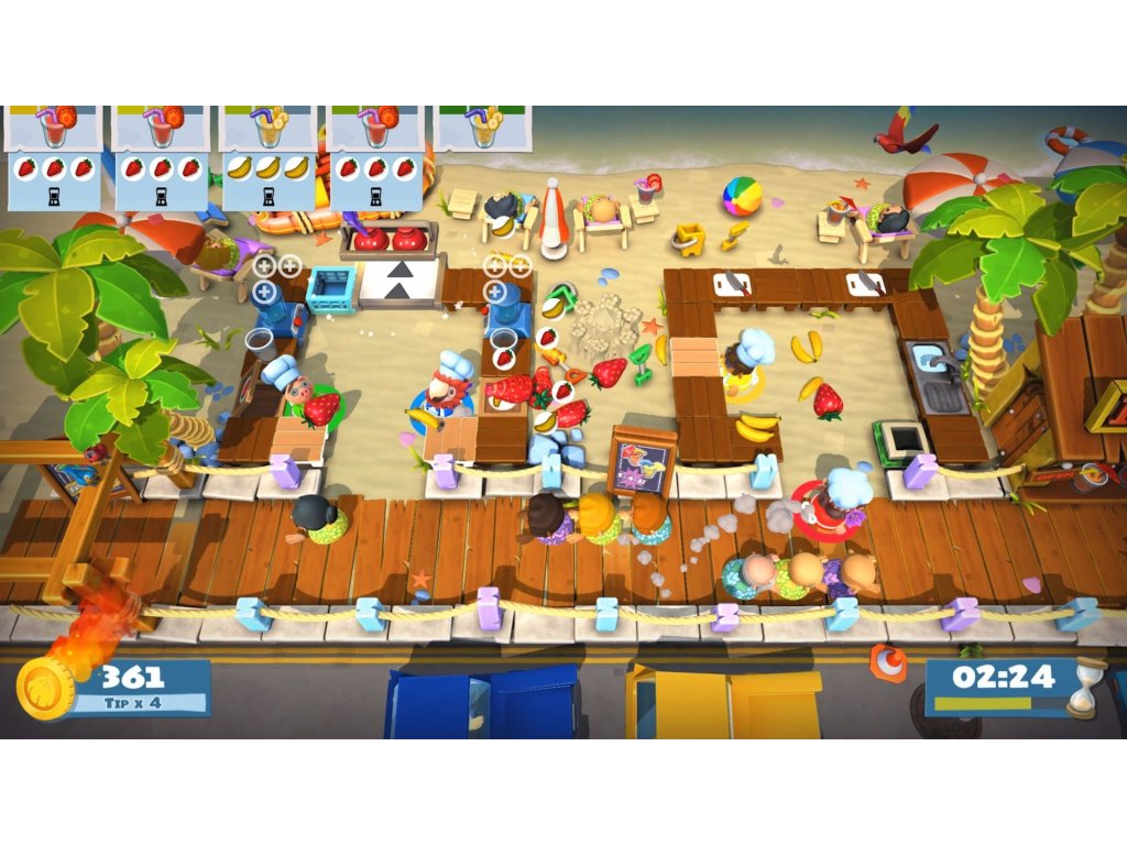 Vyzvěte jiného hráče k souboji na dvou úrovních nebo společně čelte hladovým davům během 12 nových, šťavnatých úrovníchkampaně. Pracujte společně, použijte vodní pistoli k umytí nádobí, nebo zařiďtevodní válku a plavte v chaosu!