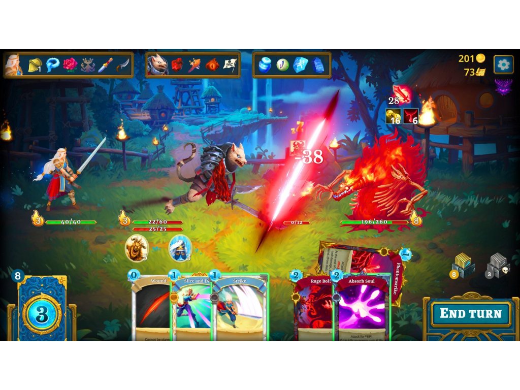 Jste uvězněni v Knize pověstí Faerie a každá stránka představuje nový úkol. Veďte své dva hrdiny k vítězství v této roguelike deckbuilderové hře vyvinuté ve spolupráci s Richardem Garfieldem, tvůrcemMagic: The Gathering™. Sestavte nejlepšísynergie mezi kartami, relikviemi a schopnostmi a pusťte se do boje s Knihou rogue.