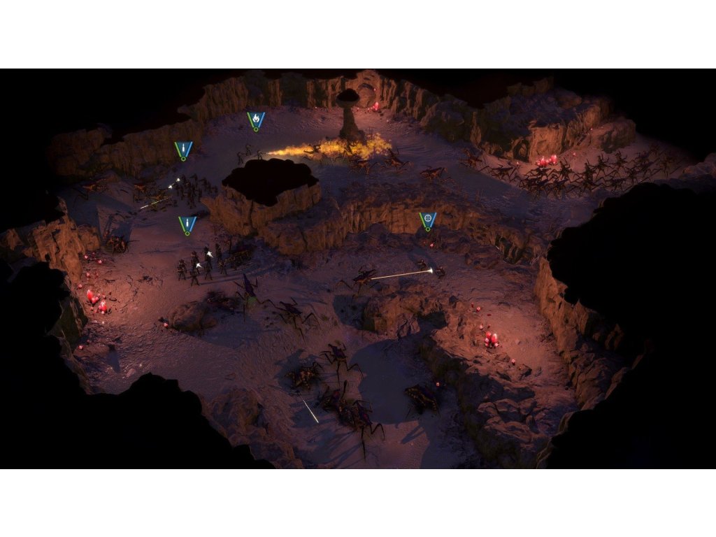 Zatímco pavoukovci se mohou spolehnout na prakticky neomezené počty, mobilní pěchota musí vyvinout účinnou taktiku, abytuto nerovnováhu překonala. Rozmístěte své jednotky na strategických místech, abyste pokryli životně důležité škrticí body a získejte vynikající palebnou sílu pomocí taktického využití úrovní nadmořské výšky. Dejte si však pozor, že bojovémechaniky, jako je True Line of Sight aTrue Line of Fire, také umožňují Broukůmklást zálohy za každým rohem, protože jsou dobře známí tím, že používají překvapivé útoky a podvody.