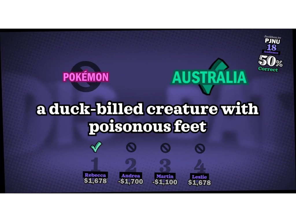 1) Pop-kultivační trivia mash-up YOU NNOW KNOW JACK: Full Stream (1-8 hráčů). Klasický návrat, plný divokých nových překvapení.