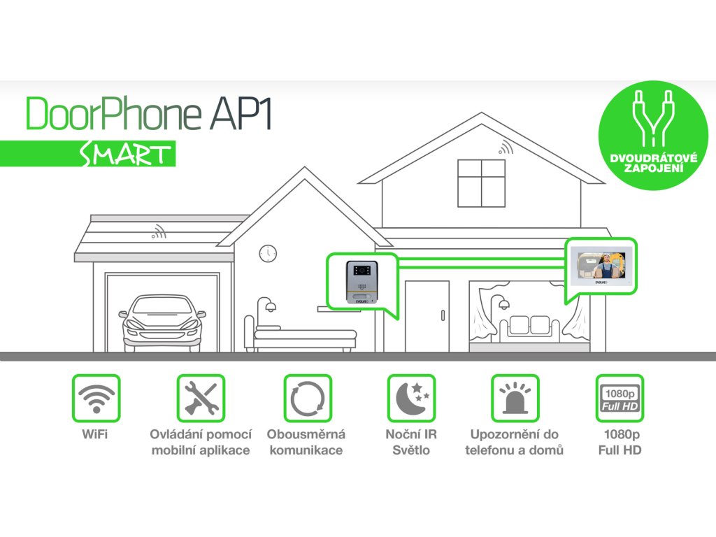 • EVOLVEO DoorPhone AP1-2 drátový videotelefon s aplikací bílý (PartNo: DPAP1-W)