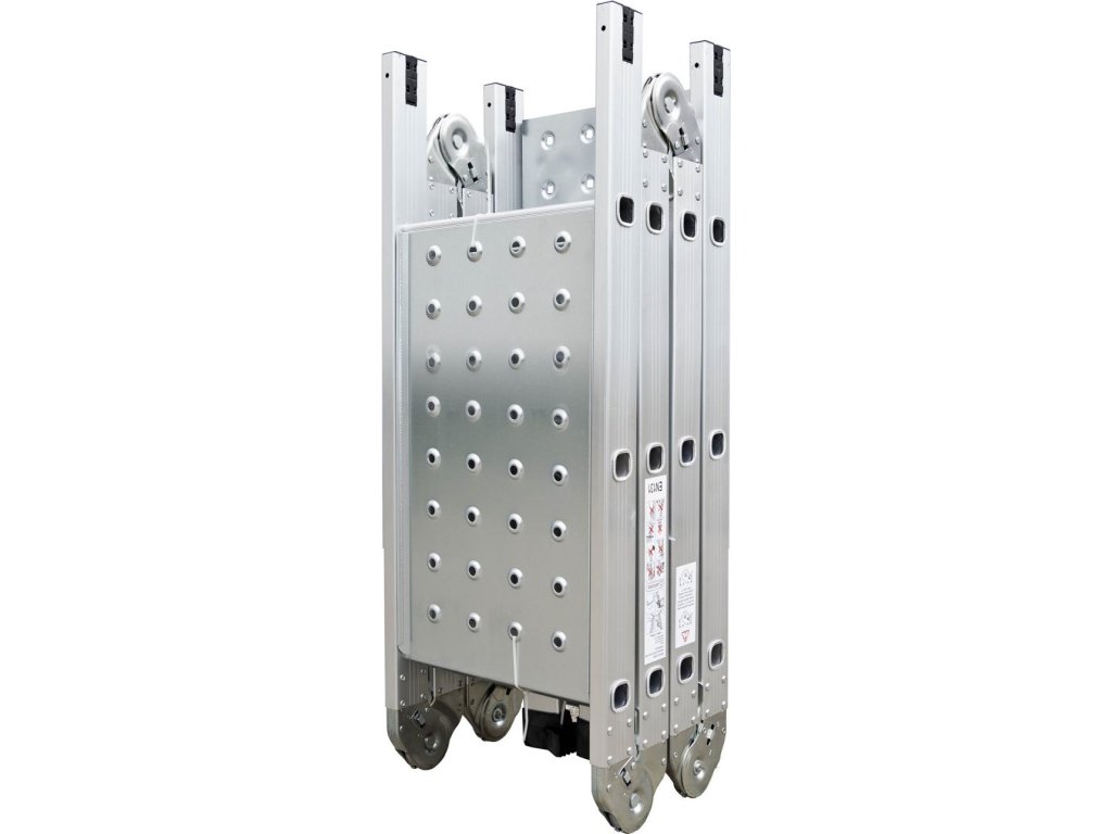 Hliníkové multifunkční štafle GA-SZ-4x3-3,7M jsou vybaveny unikátní konstrukcí a systémem duralových profilů, což zajišťuje jejich pevnost a snadné složení do minimálních rozměrů. Tyto štafle jsou vhodné pro profesionální i domácí použití, kde oceníte jejich všestrannost. Mohou sloužit jako dlouhý žebřík nebo přenosné lešení, a k balení jsou součástí 2 ks podlážek pro snadnou přestavbu.