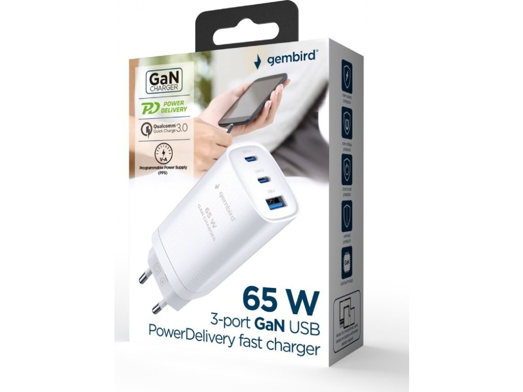 GEMBIRD PD nabíječka 1xUSB-A 2xUSB-C 67W bilá