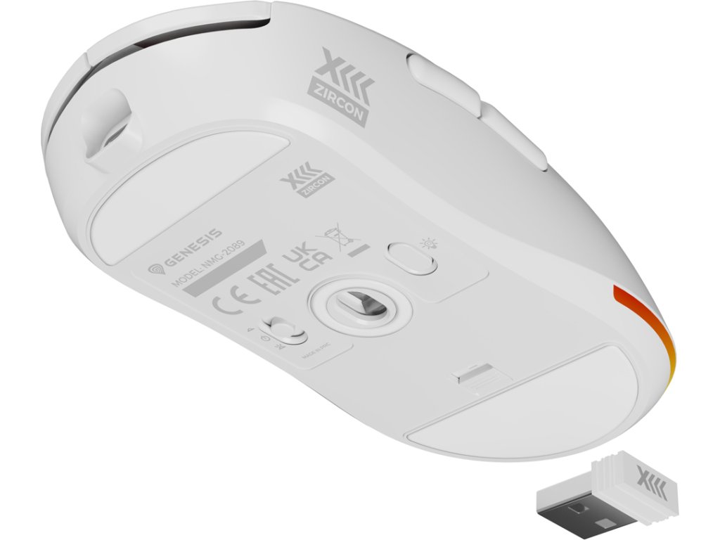 Seznamte se s jednou z nejpokročilejších myší na trhu. Představujeme vám GENESIS Zircon XIII s konstrukcí nabízející vše, co skutečně potřebujete. Plné přizpůsobení hardwaru (vyměnitelné spínače, vzdálenosti, pružiny), jeden z nejlepších snímačů na světě(Pixart PAW3395) a technologie bezdrátového připojení(RapidSpeed™ Wireless) pro skutečně drátový výkon, a to není vše. S GENESIS Zircon XIII hra teprve začíná.
