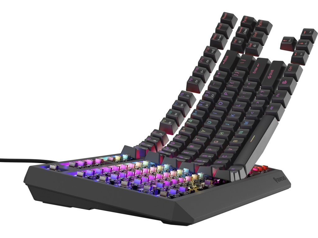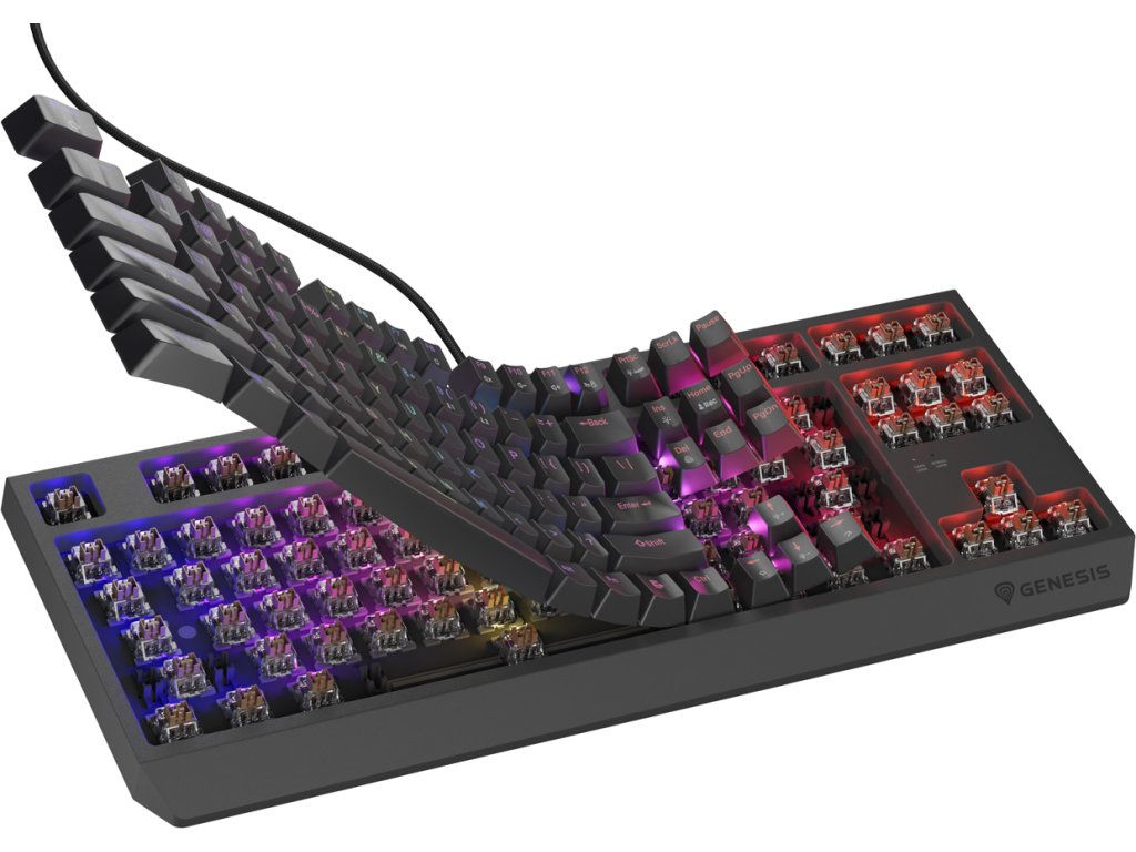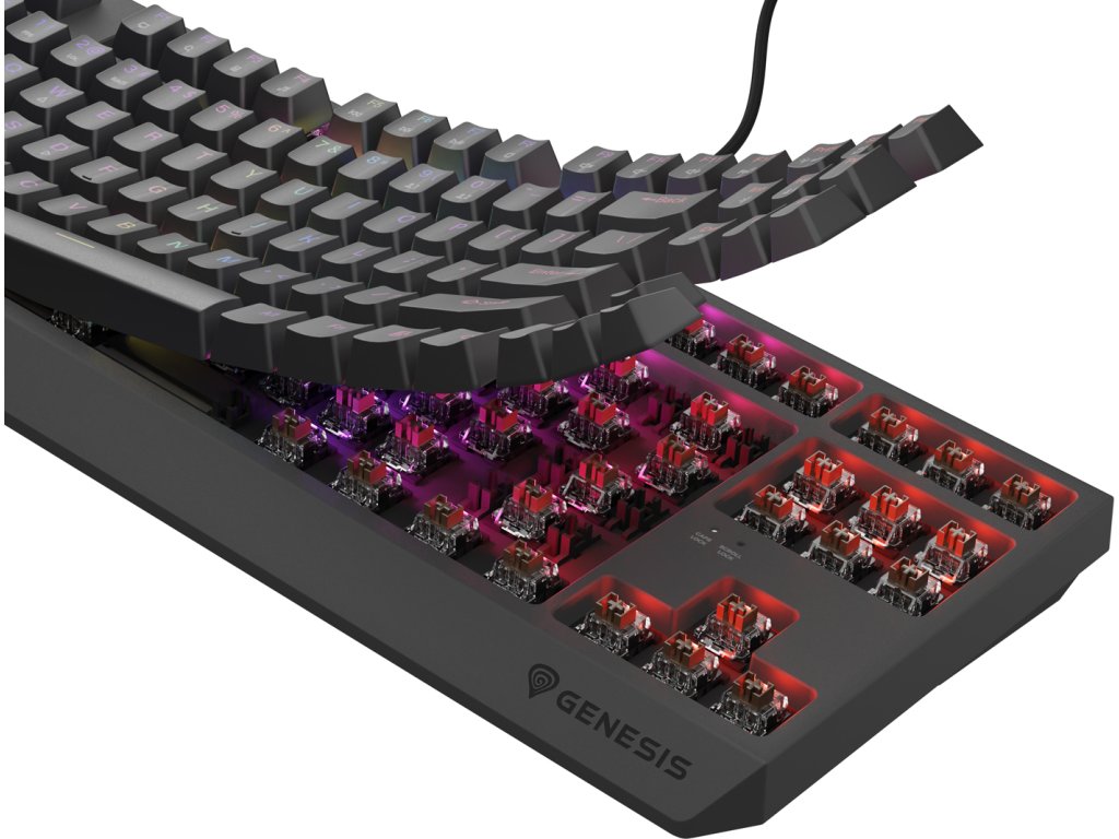 Klávesnici Genesis Thor 230 TKL jsme vybavili lineárními spínači Outemu Brown, které vynikají vysokou přesností, aktivací bez ohledu na místo stisknutí klávesy a vysokou dynamikou. Víme však, že jako hráč můžete mít své vlastní preference. Proto jsme do Genesis Thor 230 TKL implementovali Hot Swap - techniku, která vám umožní nahradit jakýkoli třípinový mechanismus mikrospínačem od společností jako Outemu, Akko, KTT. Jednoduše vytáhněte nainstalovaný mechanismus a zapojte nový. Díky systému Hot Swap také nemusíte kupovat novou klávesnici, když jeden spínač selže. Vyměníte jej během několika sekund. Je to jednoduché.