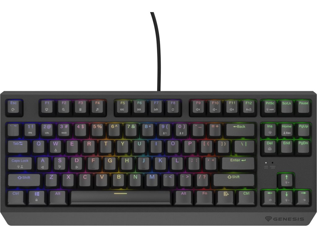 Náhoda? U klávesnice Genesis Thor 230 TKL není nic náhodné. Kromě výše zmíněného vybavení vám tento model nabídne řadu řešení, která vám hraní ještě více zpříjemní. Speciální kanál pro položení opleteného kabelu v kterémkoli ze 3 směrů, dvojité sklopné nožičky pro snadné nastavení náklonu ve 2 úrovních, funkce umožňující aktivaci funkčních kláves bez použití "FN" - to je jen malá část.