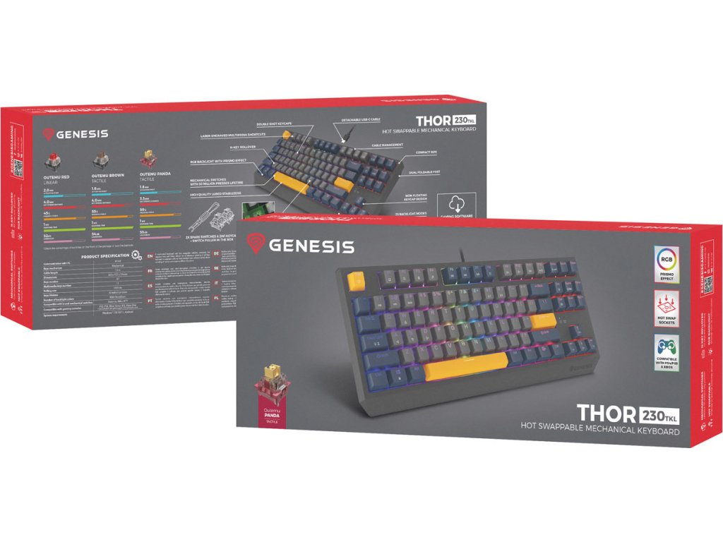 S Genesis Thor 230 TKL dosáhnete na víc - zcela nový neplovoucí design kombinující systém Hot Swap, klávesy s potiskem Double Injection,, tlumicí pěnu a předmazané stabilizátory, a to není vše. Vylepšete své dovednosti a sáhněte po funkčních řešeních. To je Genesis Thor 230 TKL.