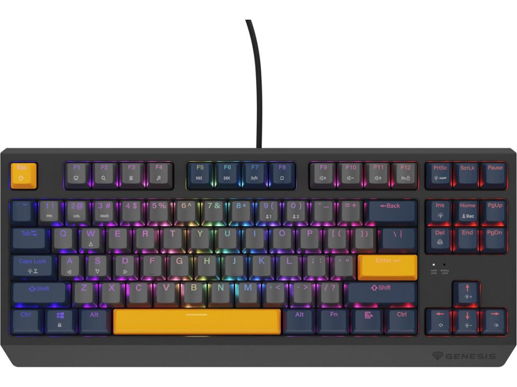 V klávesnici Genesis Thor 230 TKL není nic náhodné. Kromě výše zmíněného vybavení vám tento model nabídne řadu řešení, která vám hraní ještě více zpříjemní. Speciální kanál pro položení opleteného kabelu v kterémkoli ze 3 směrů, dvojité sklopné nožičky pro snadné nastavení náklonu ve 2 úrovních, funkce umožňující aktivaci funkčních kláves bez použití "FN" - to je jen malá část.
