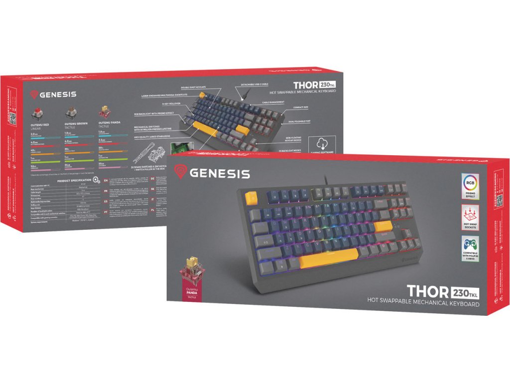 S Genesis Thor 230 TKL dosáhnete na víc - zcela nový neplovoucí design kombinující systém Hot Swap, klávesy s potiskem Double Injection,, tlumicí pěnu a předmazané stabilizátory, a to není vše. Vylepšete své dovednosti a sáhněte po funkčních řešeních. To je Genesis Thor 230 TKL.