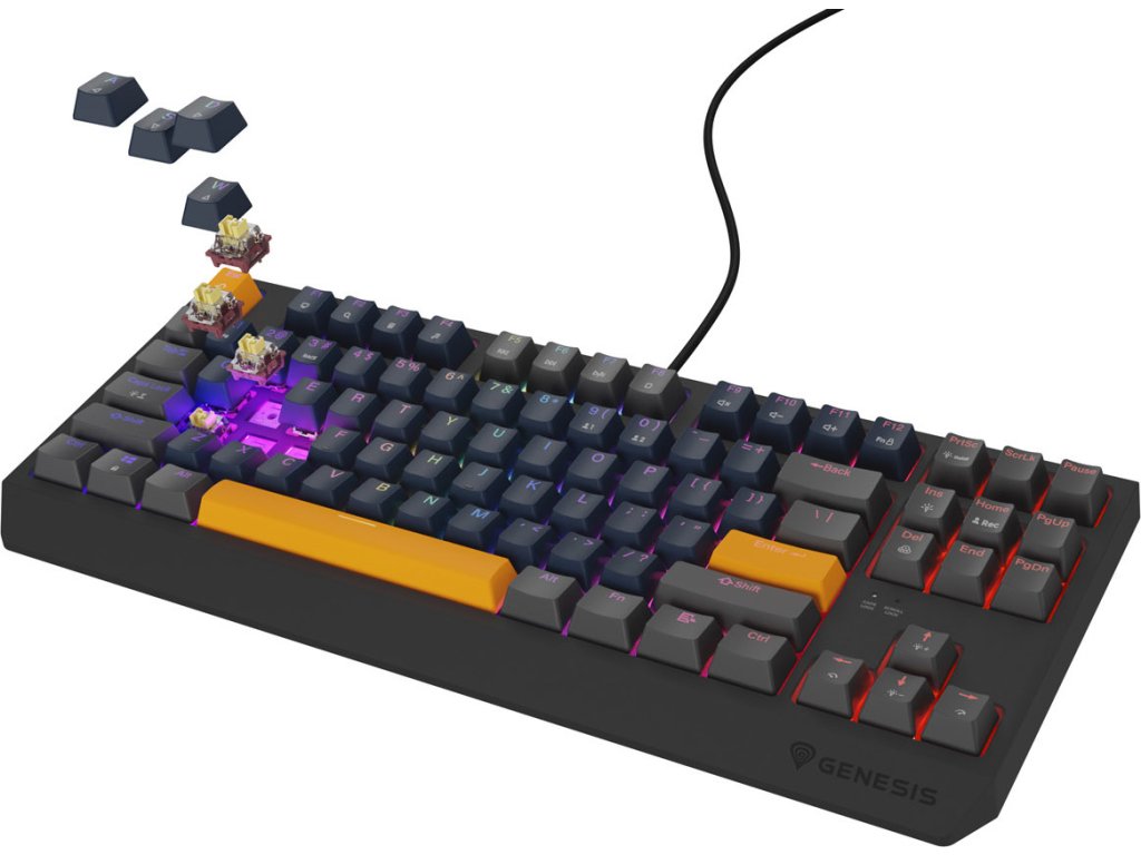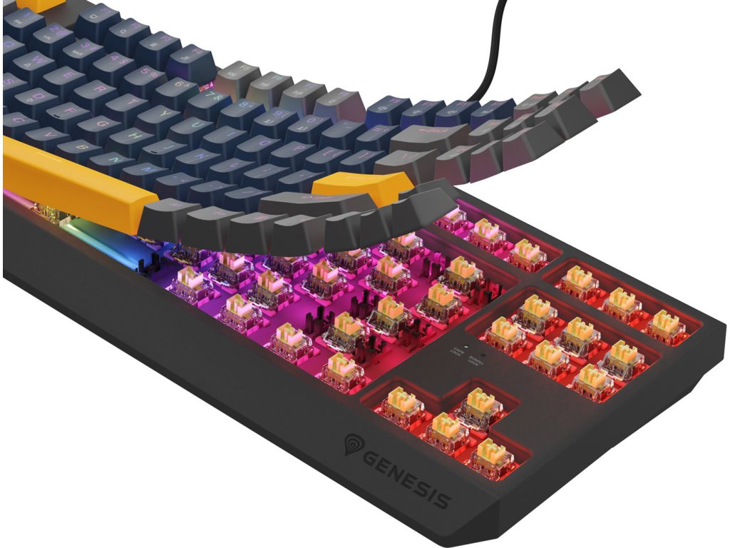 Klávesnici Genesis Thor 230 TKL jsme vybavili lineárními spínači Outemu Red, které vynikají vysokou přesností, aktivací bez ohledu na místo stisknutí klávesy a vysokou dynamikou. Víme však, že jako hráč můžete mít své vlastní preference. Proto jsme do Genesis Thor 230 TKL implementovali Hot Swap - techniku, která vám umožní nahradit jakýkoli třípinový mechanismus mikrospínačem od společností jako Outemu, Akko, KTT. Jednoduše vytáhněte nainstalovaný mechanismus a zapojte nový. Díky systému Hot Swap také nemusíte kupovat novou klávesnici, když jeden spínač selže. Vyměníte jej během několika sekund. Je to tak jednoduché.
