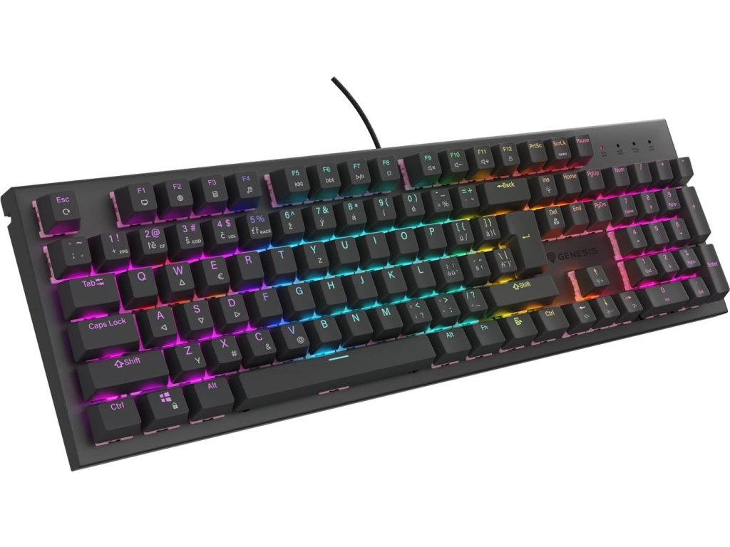 Genesis tichá herní klávesnice THOR 303/RGB/Outemu Peach Silent/Drátová USB/CZ-SK layout/Černá
