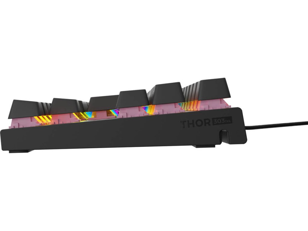 Aktualizovaná verze Thor 303 TKL se vyznačuje vylepšenými stabilizátory, které díky svým vlastnostem a kvalitnímu mazání zajišťují tichý provoz a ještě plynulejší pohyb klíče. K dispozici je také speciální protiprachový kryt, který chrání spínací mechanismus a prodlužuje jeho životnost.