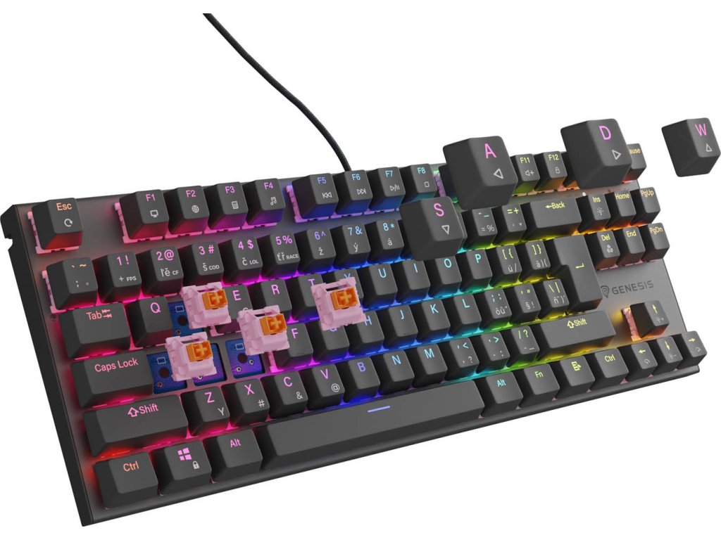 Genesis tichá herní klávesnice THOR 303/TKL/RGB/Outemu Peach/Drátová USB/CZ-SK layout/Černá