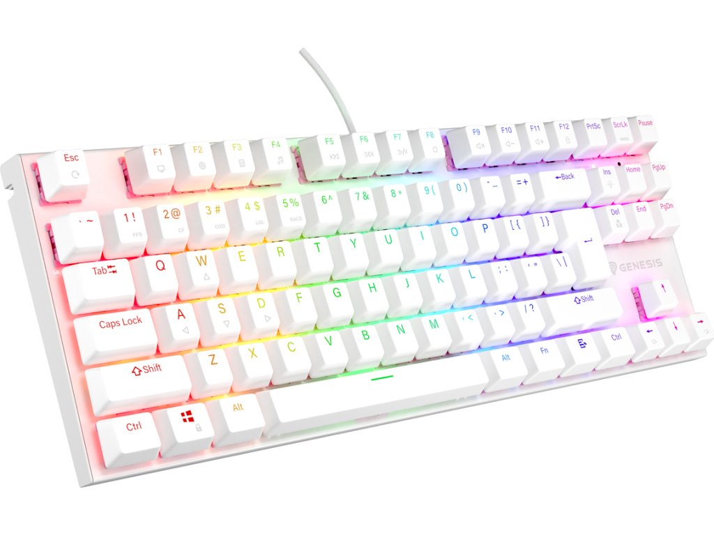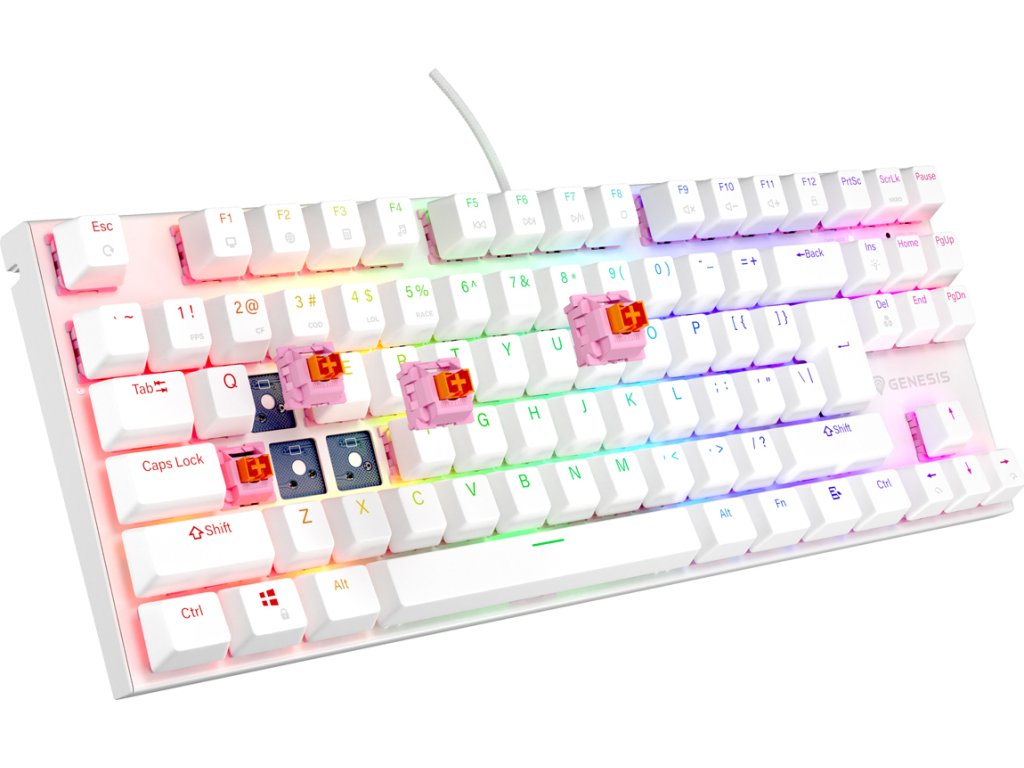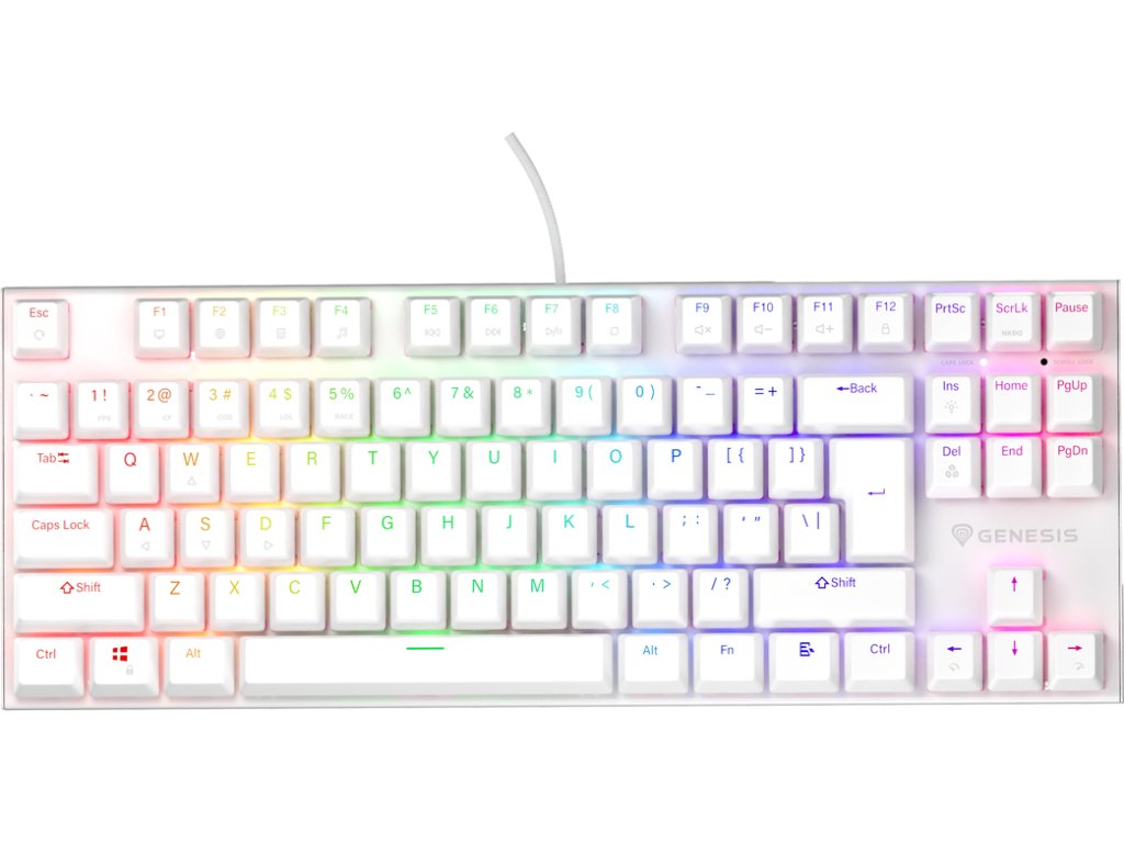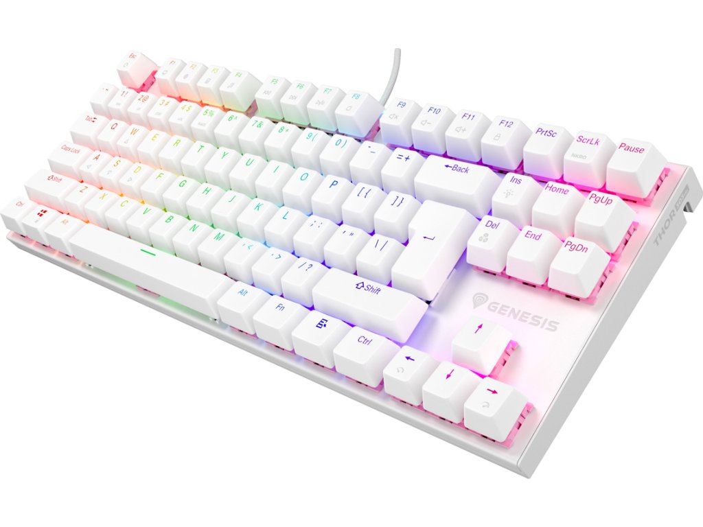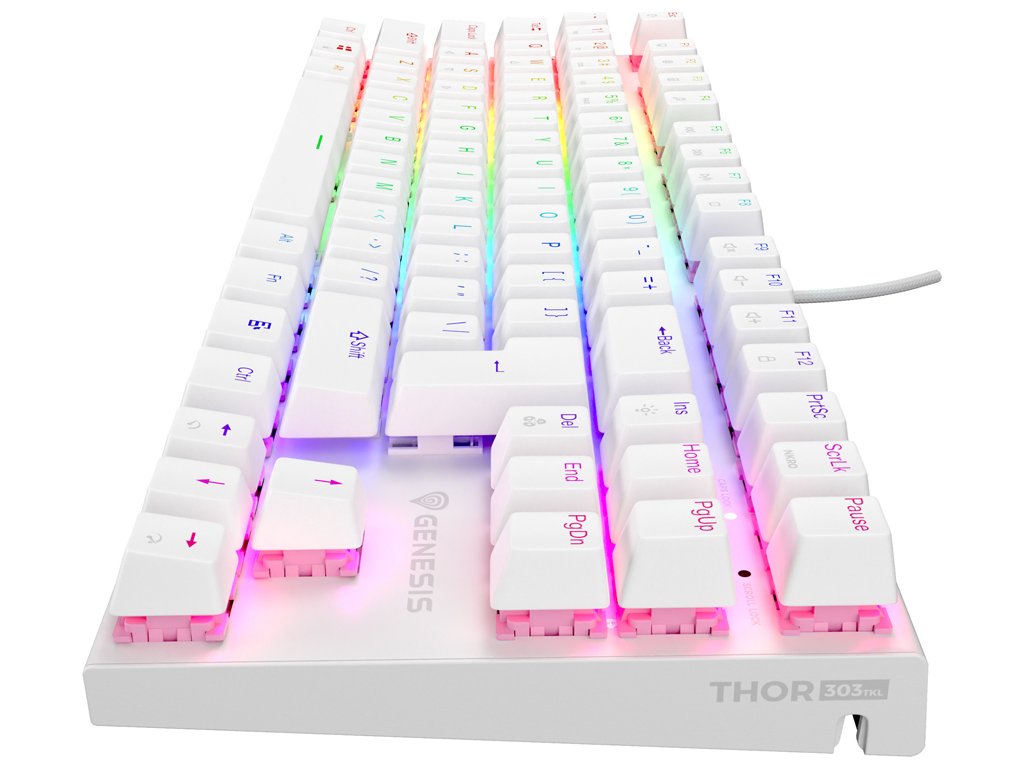 Genesis tichá herní klávesnice THOR 303/TKL/RGB/Outemu Peach Silent/Drátová USB/US layout/Bílá