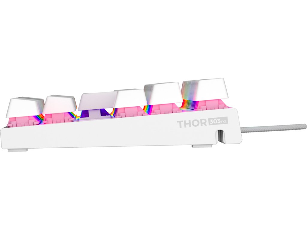 Aktualizovaná verze Thor 303 TKL se vyznačuje vylepšenými stabilizátory, které díky svým vlastnostem a kvalitnímu mazání zajišťují tichý chod a ještě plynulejší pohyb klíče. K dispozici je také speciální protiprachový kryt, který chrání spínací mechanismus a prodlužuje jeho životnost.