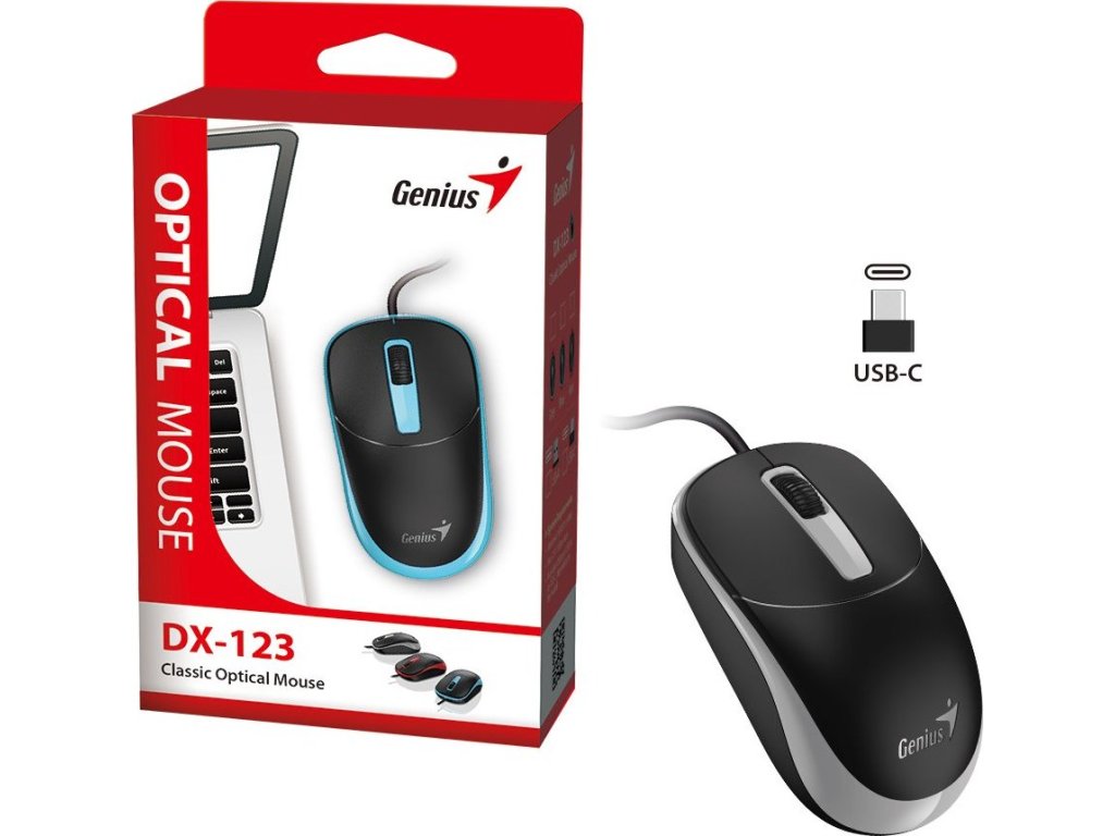 Kompaktní myš Genius DX-123, která je navržena pro intenzivní, ale pohodlnou práci na PC. Disponuje standardním rozvržením tlačítek a středovým kolečkem, takže umožňuje pohodlné ovládání aplikací, správu tabulek a procházení internetových stránek nebo dokumentů. O plynulý a přesný pohyb kurzoru se stará optický senzor s rozlišením 1200 DPI. Pro rychlé a jednoduché připojení k počítači nebo notebooku slouží port USB-C. Kabel o délce 1,5 metrů je dostatečný pro optimální pohyb po pracovní ploše bez zbytečného omezení.