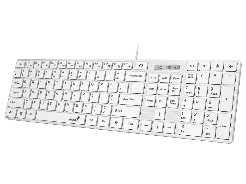 Tenká klávesnice Genius Slimstar 126 s podporou nástroje AI Copilot a numerickou částí, která je vhodná pro každodenní psaní textů a běžné práci na stolním PC, případně se uplatní také jako doplňková klávesnice k notebooku. Nízký profil kláves a optimální úhel zdvihu podporuje pohodlí a umožní vám dlouhodobé psaní a tvorbu sáhodlouhých dokumentů. Pro snadné a rychlé připojení slouží rozhraní USB. Tento model klávesnice Genius Slimstar 126 je vybaven samostatnou klávesou pro vyvolání nástroje Microsoft Copilot. Tento nástroj umělé inteligence je užitečný pro rozsáhlou práci s texty, tvorbu konceptů, souhrnů, tabulek, grafů nebo třeba jen psaní e-mailů. Umožní vám rychle získat potřebné informace, a tím zefektivní vaši práci na úkolech a celkovou organizaci času.
